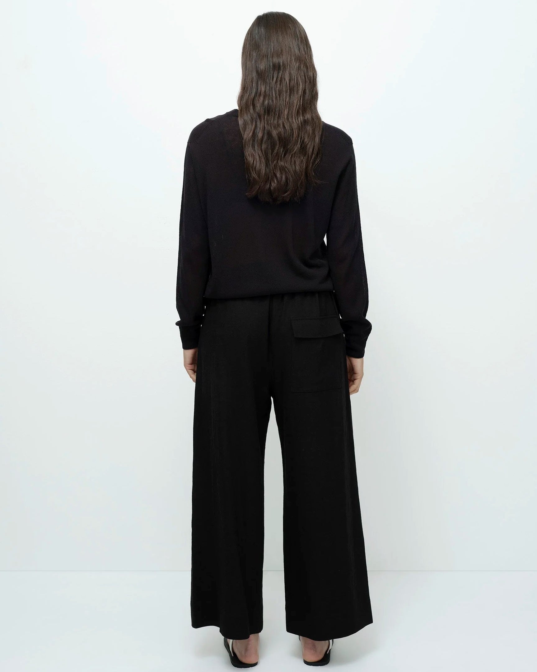 Black Linen Blend Cropped Pants
