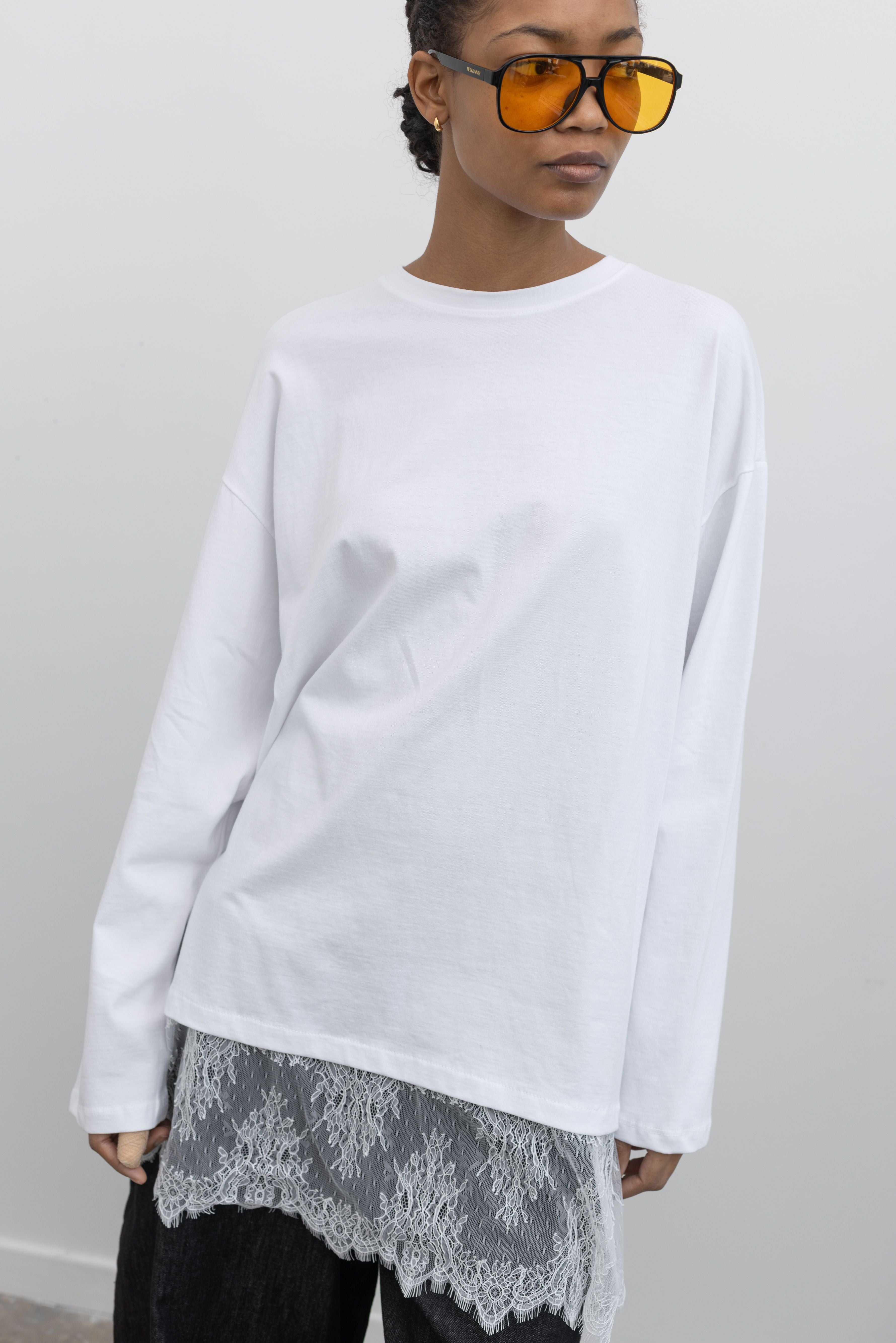 Oversized White Lace Hem Tunic Top