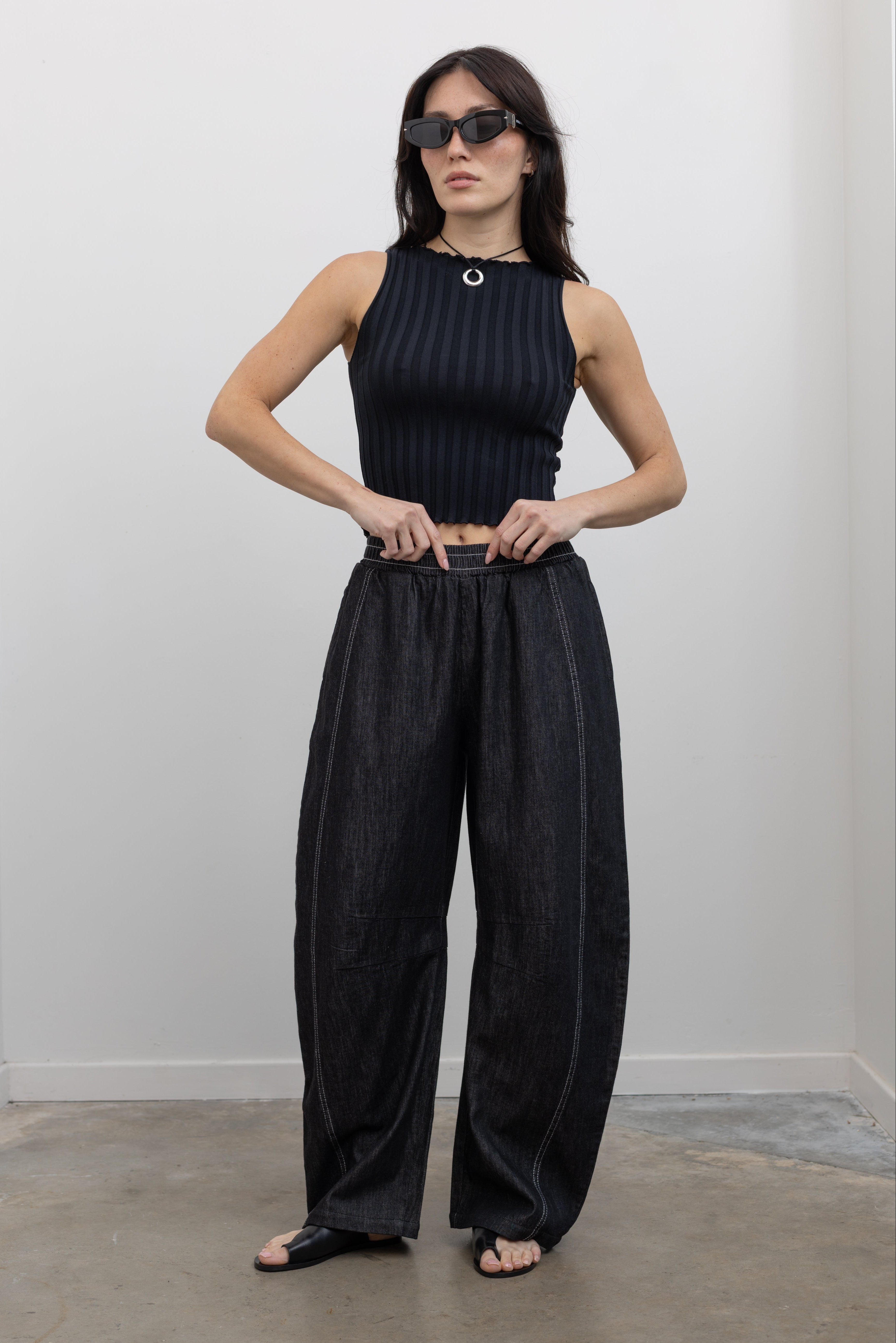 Black Contrast Stitch Barrel Jeans