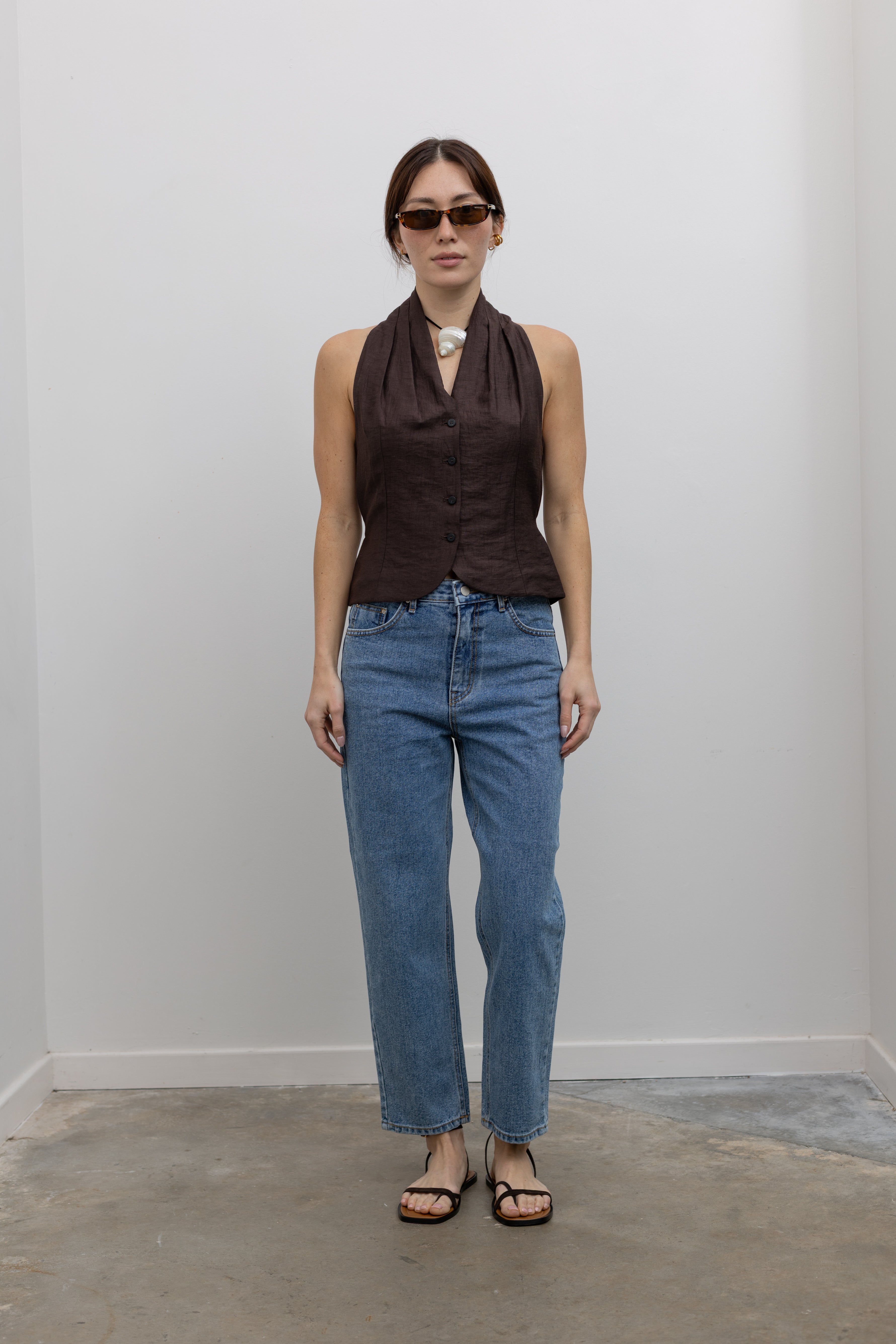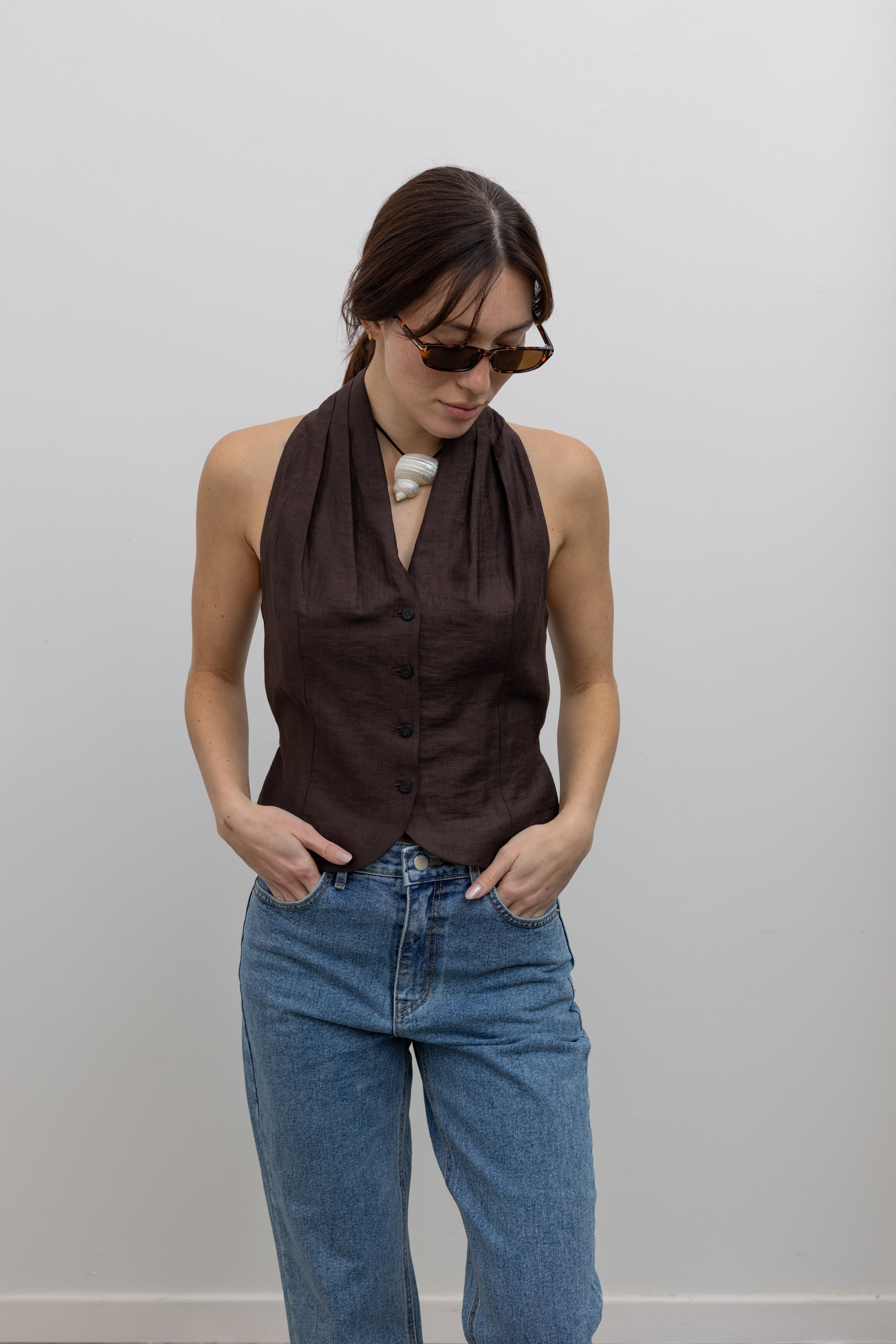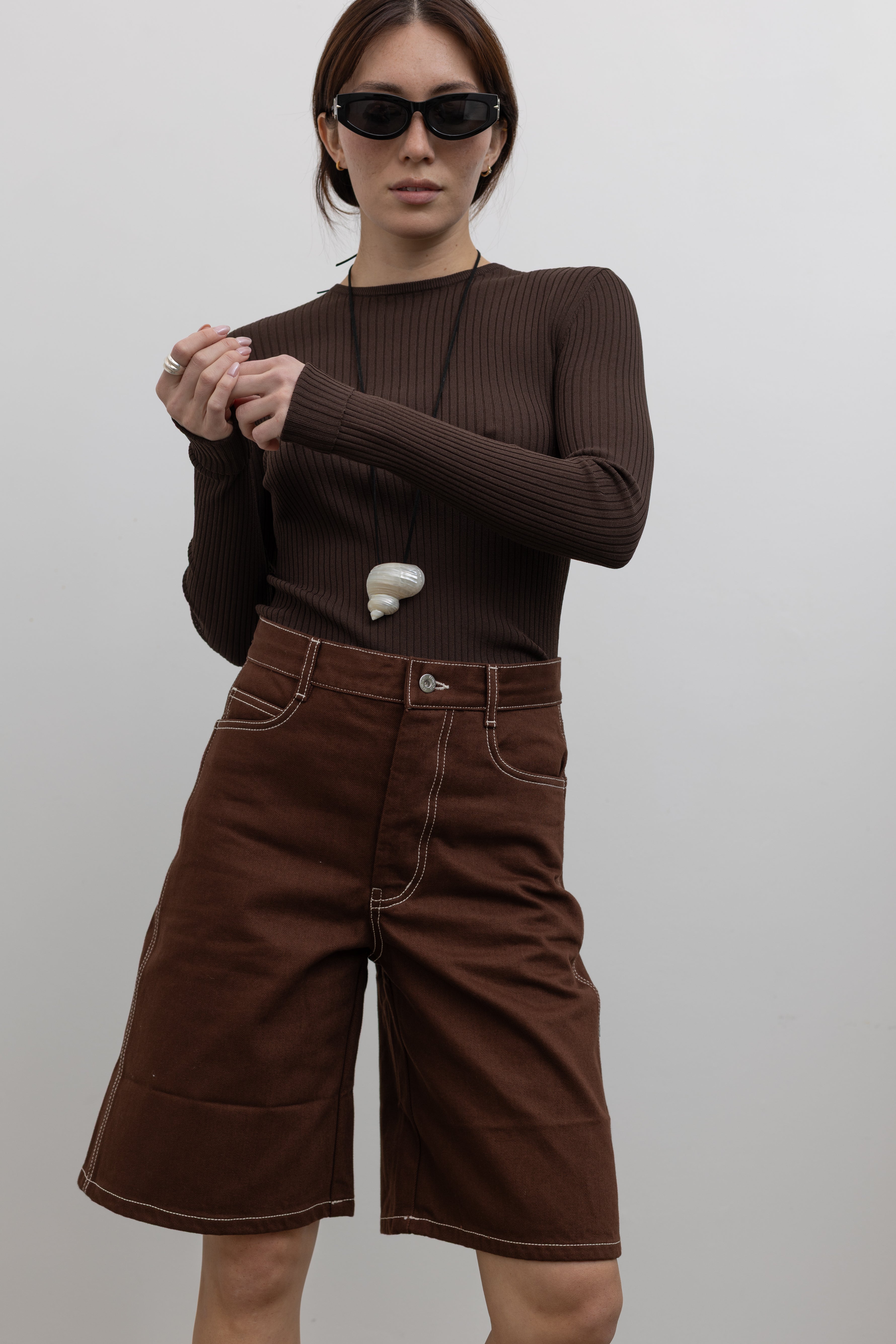 Brown Luxe Spring Twill Tucked Pleated Wide Leg Short