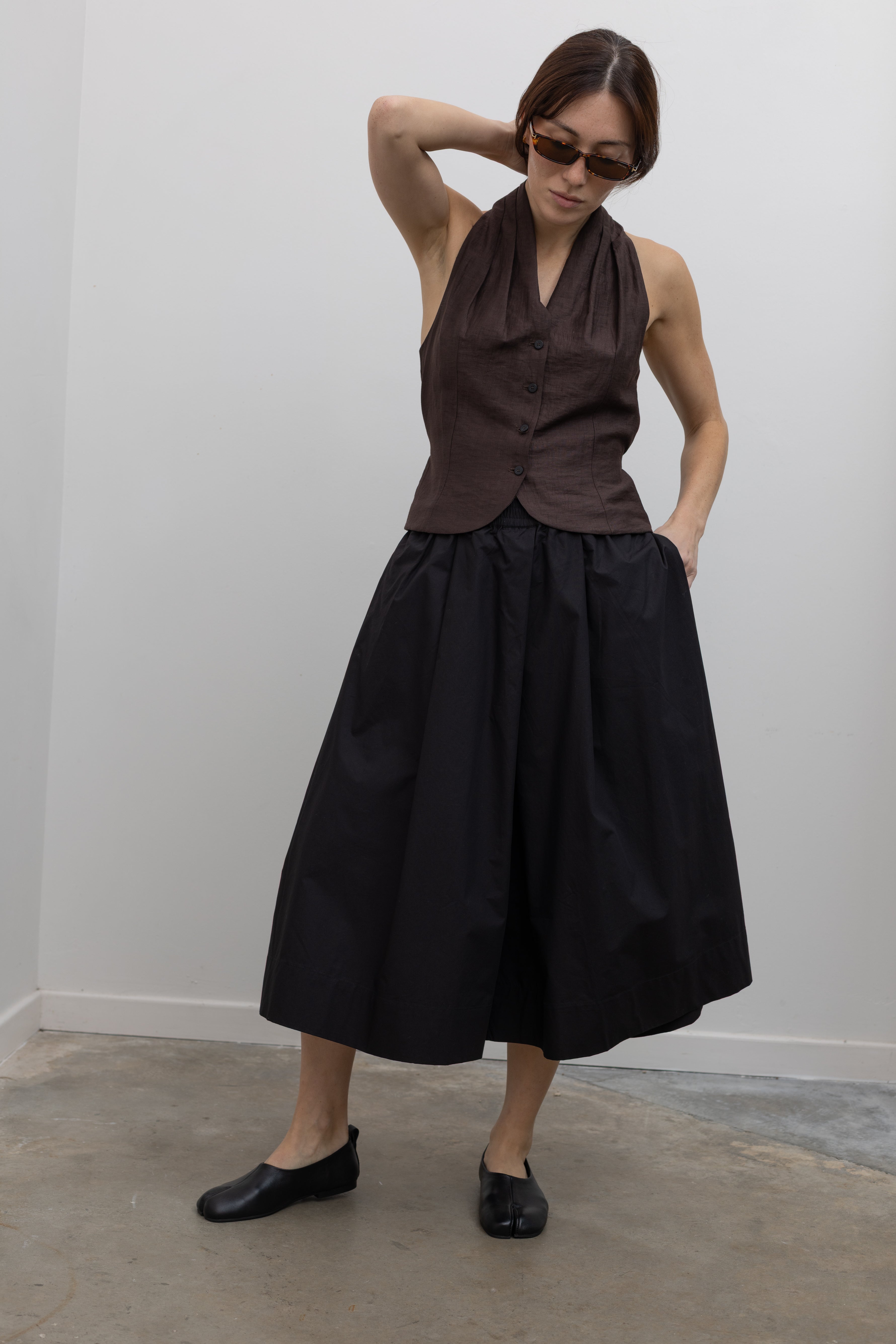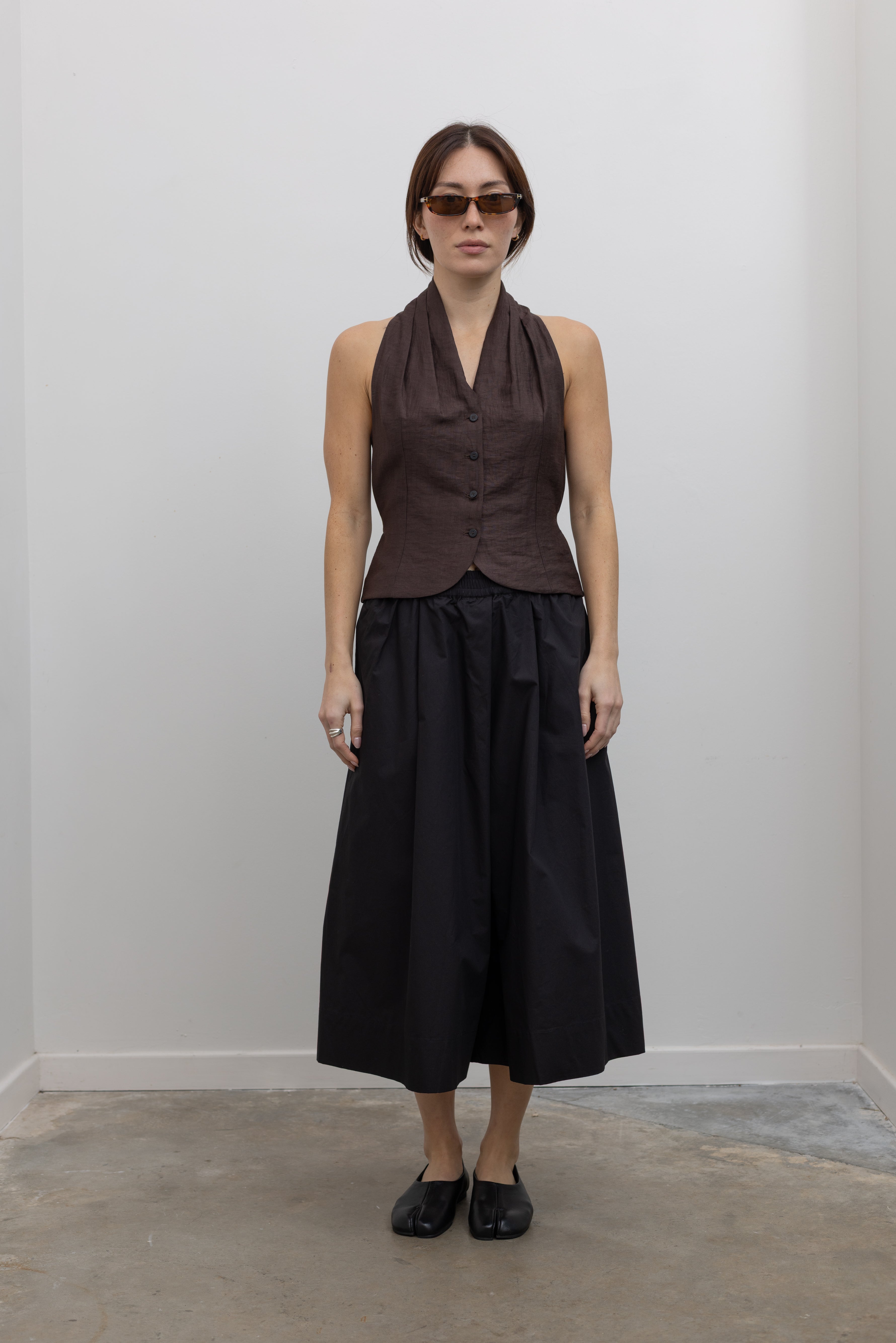 Brown Compact Eco Poplin Pinched Pleat Dress