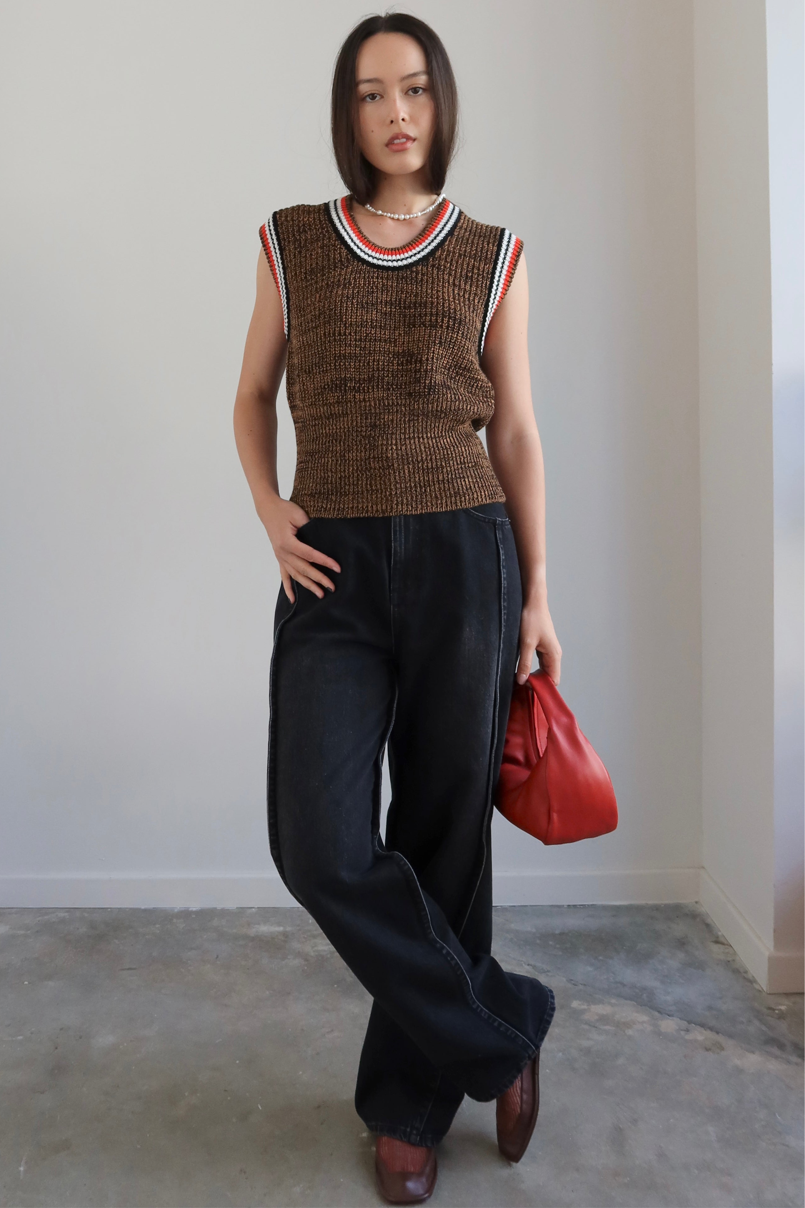 Denim Waist Pinstripe Trouser Layered Pants