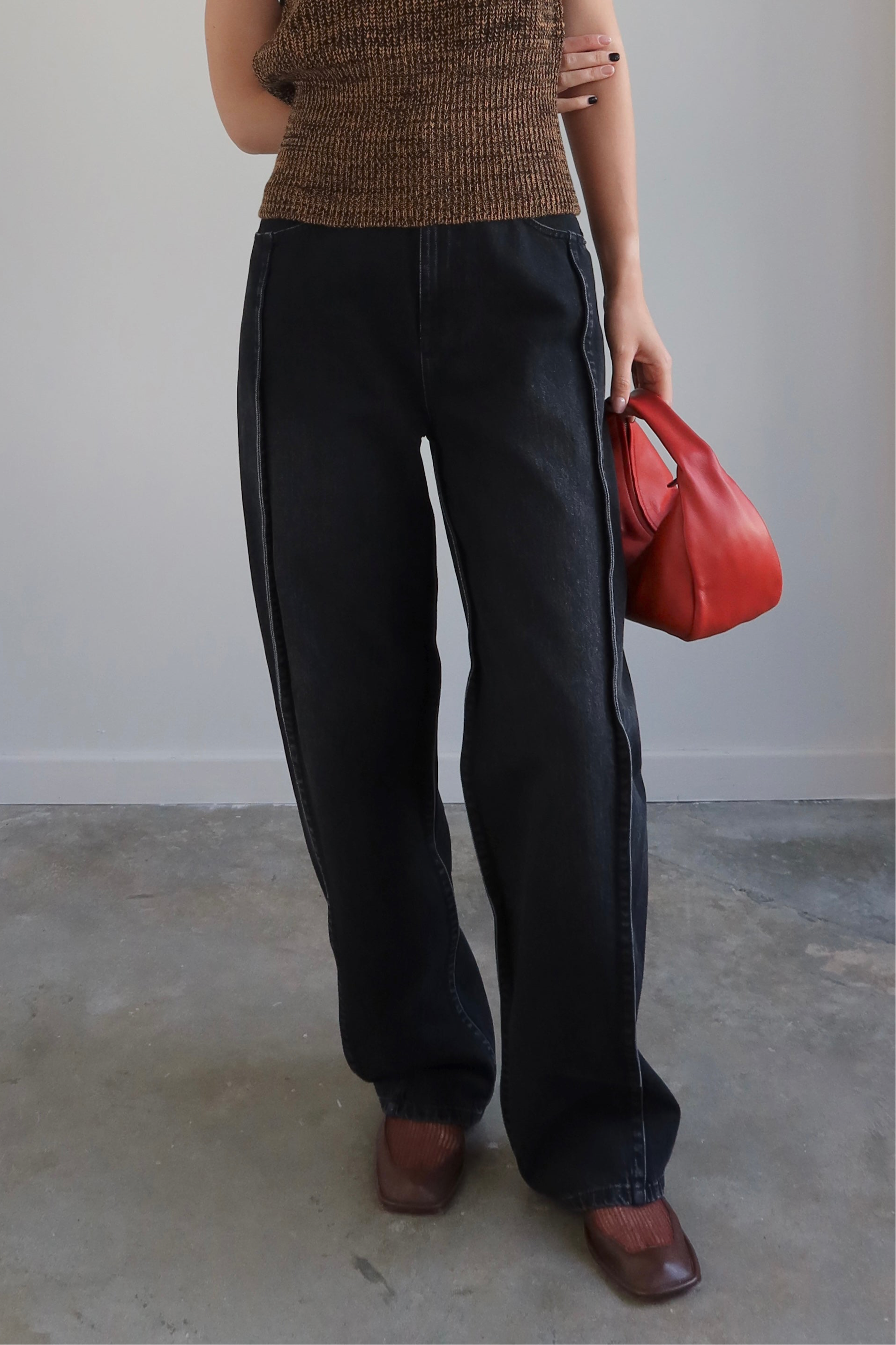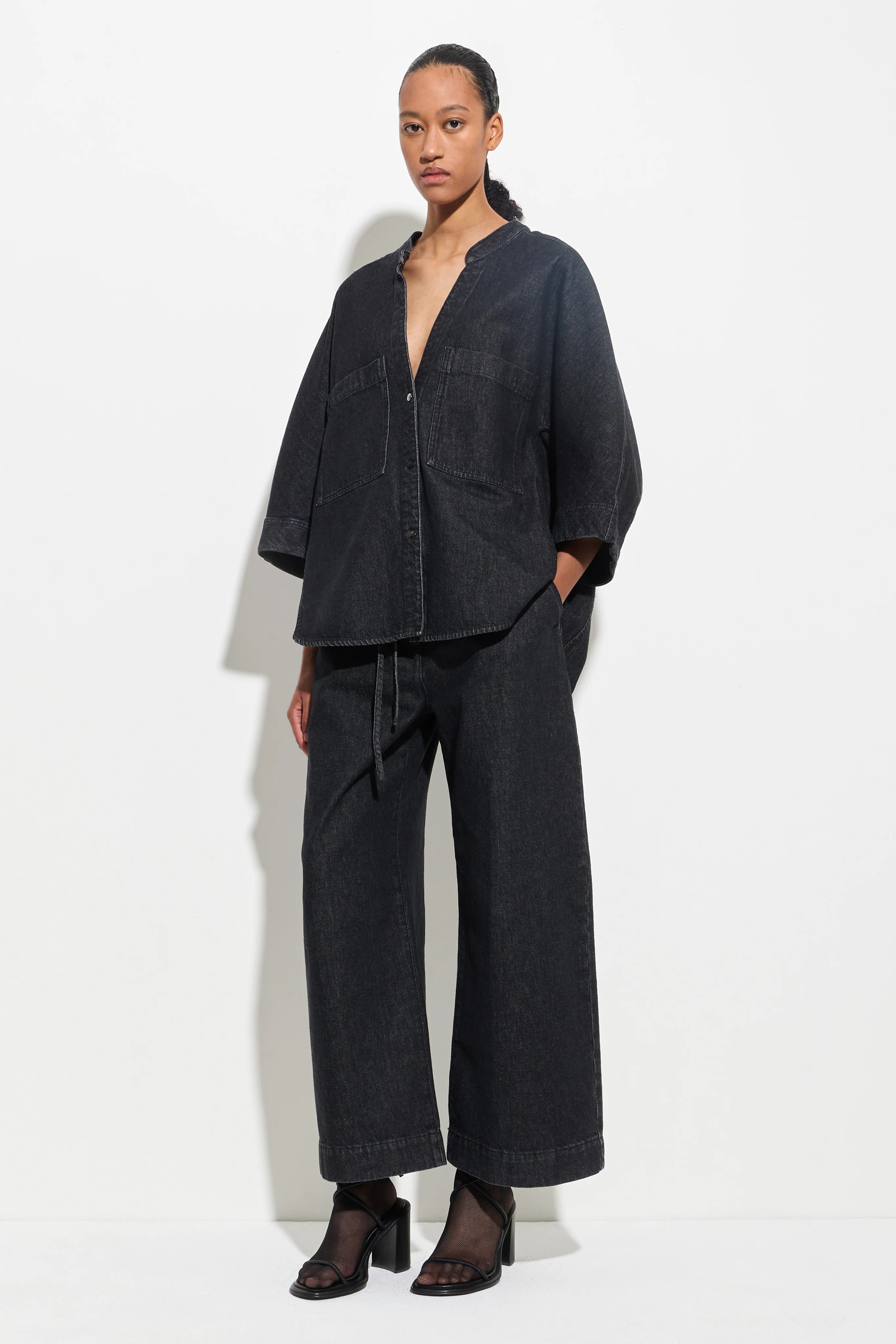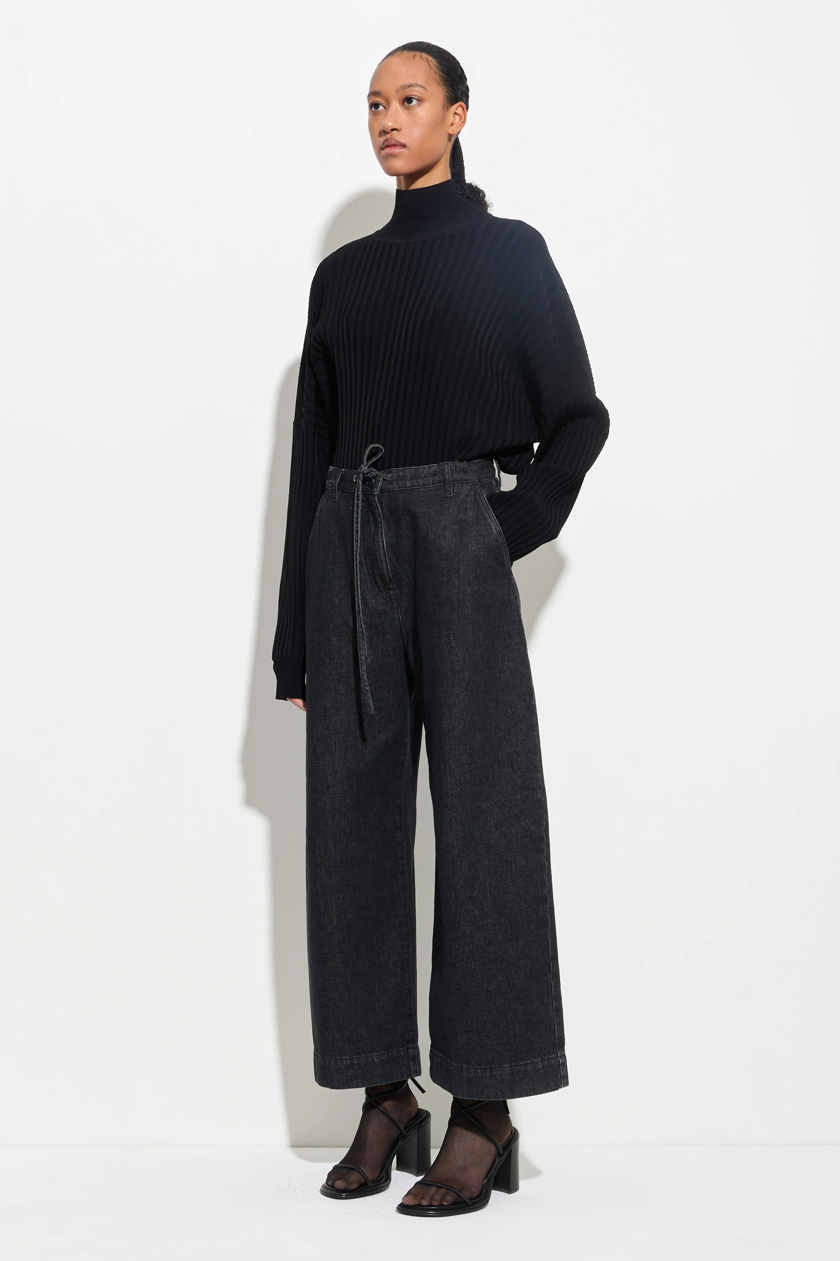 Pioni Black Denim Drawstring Pants