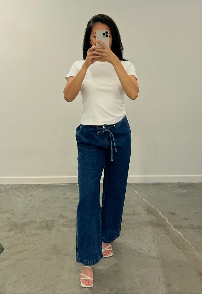 Dark Wash Denim Drawstring Pants