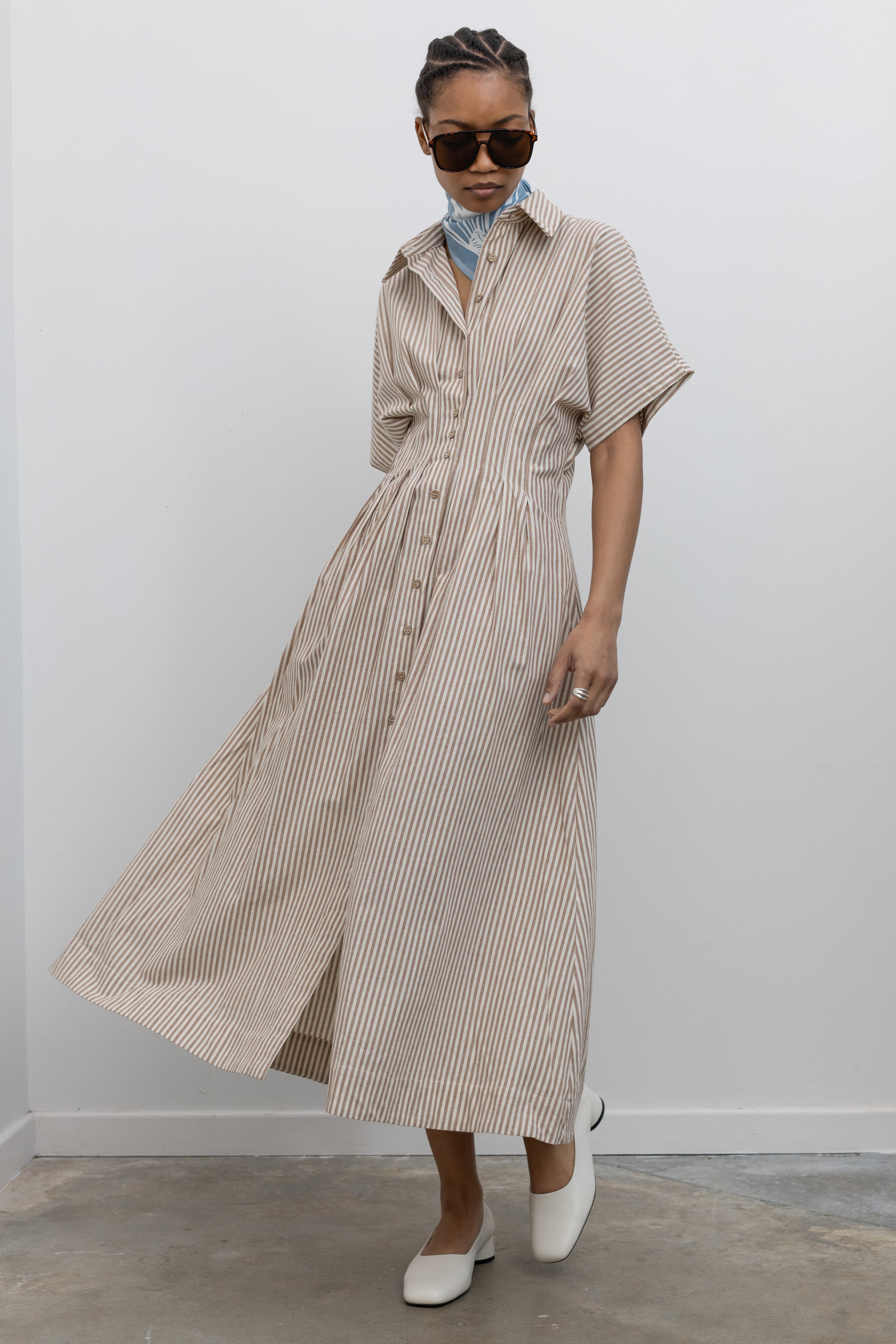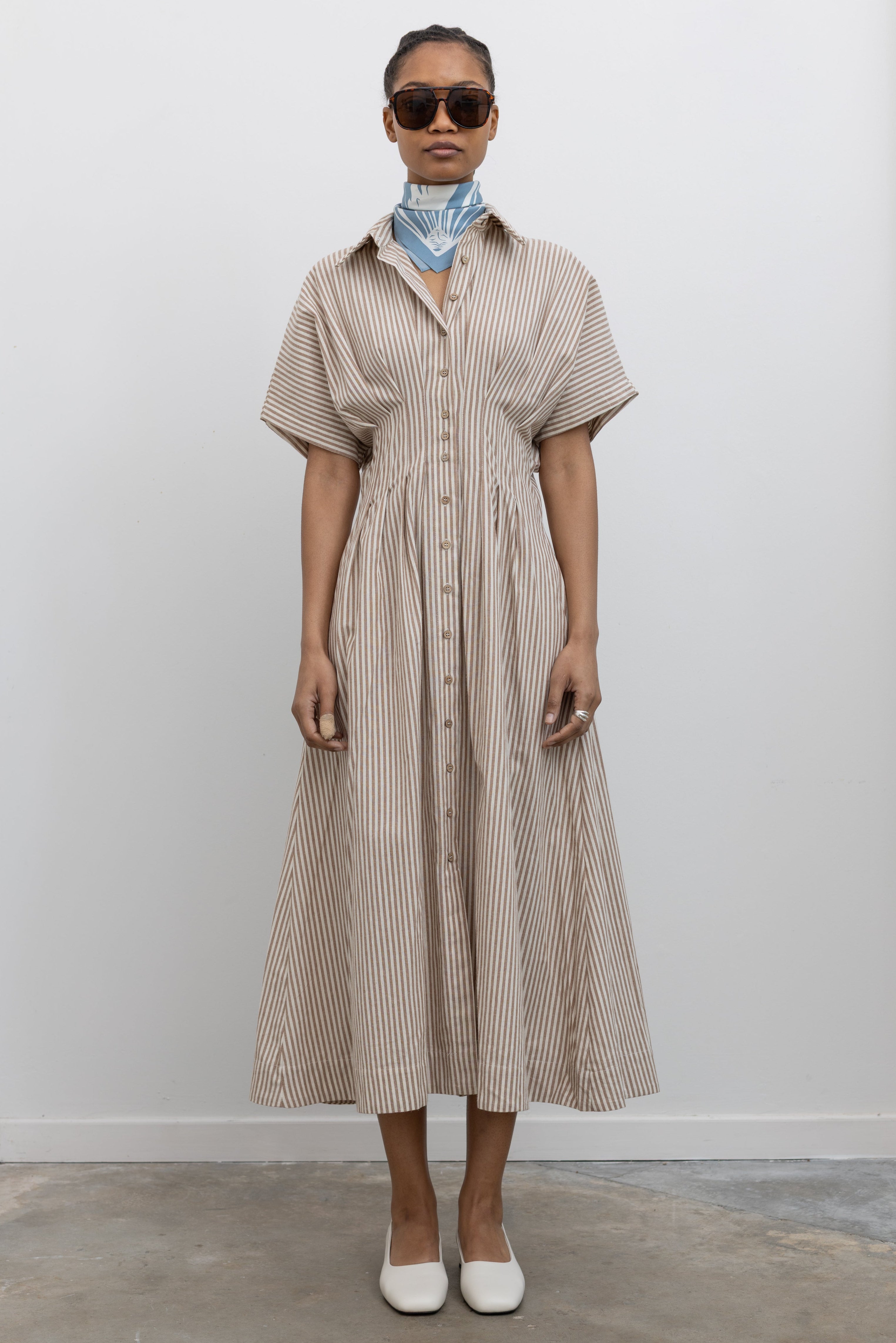 Brown Compact Eco Poplin Pinched Pleat Dress