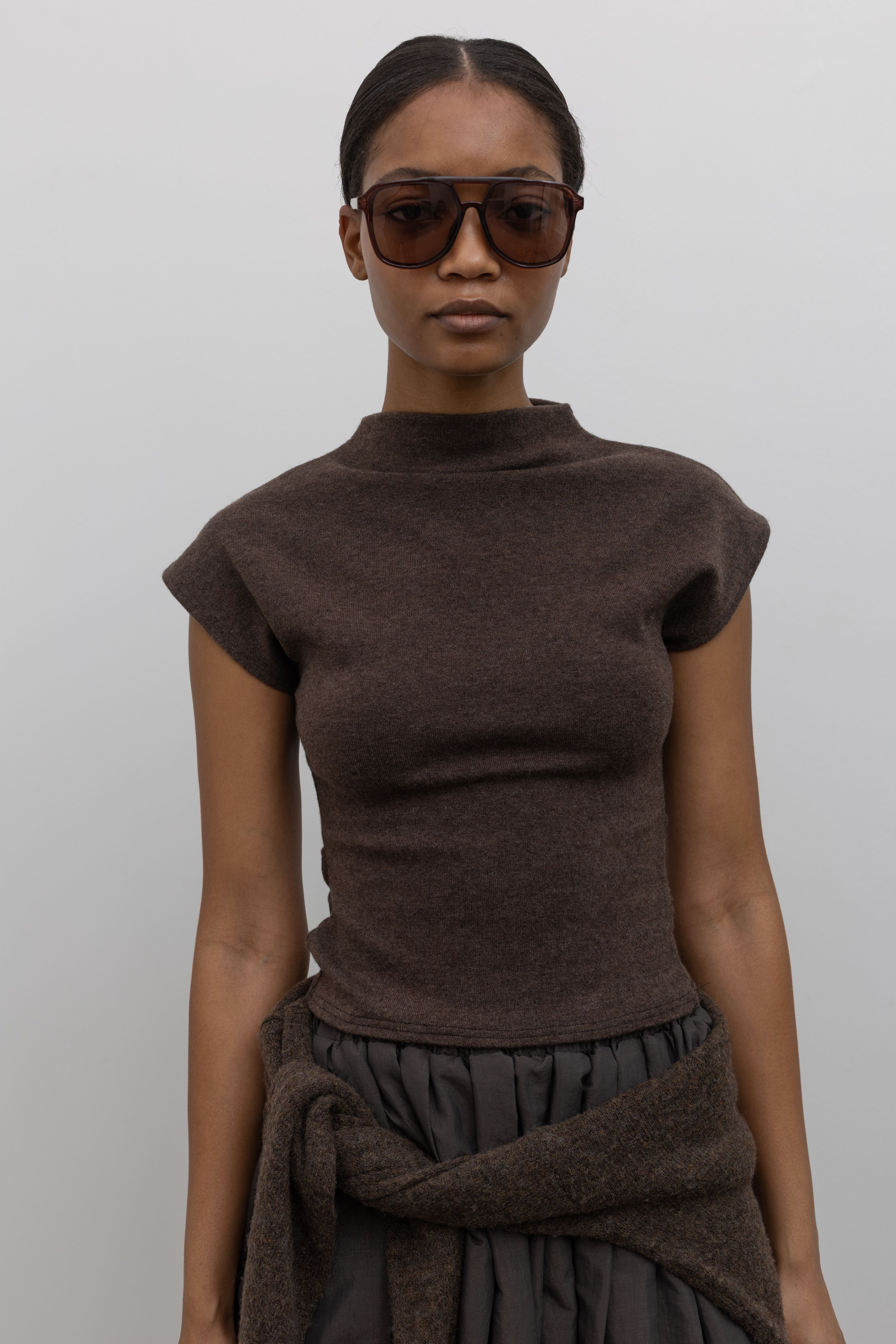 Brown Wool Tencel Crewneck Top