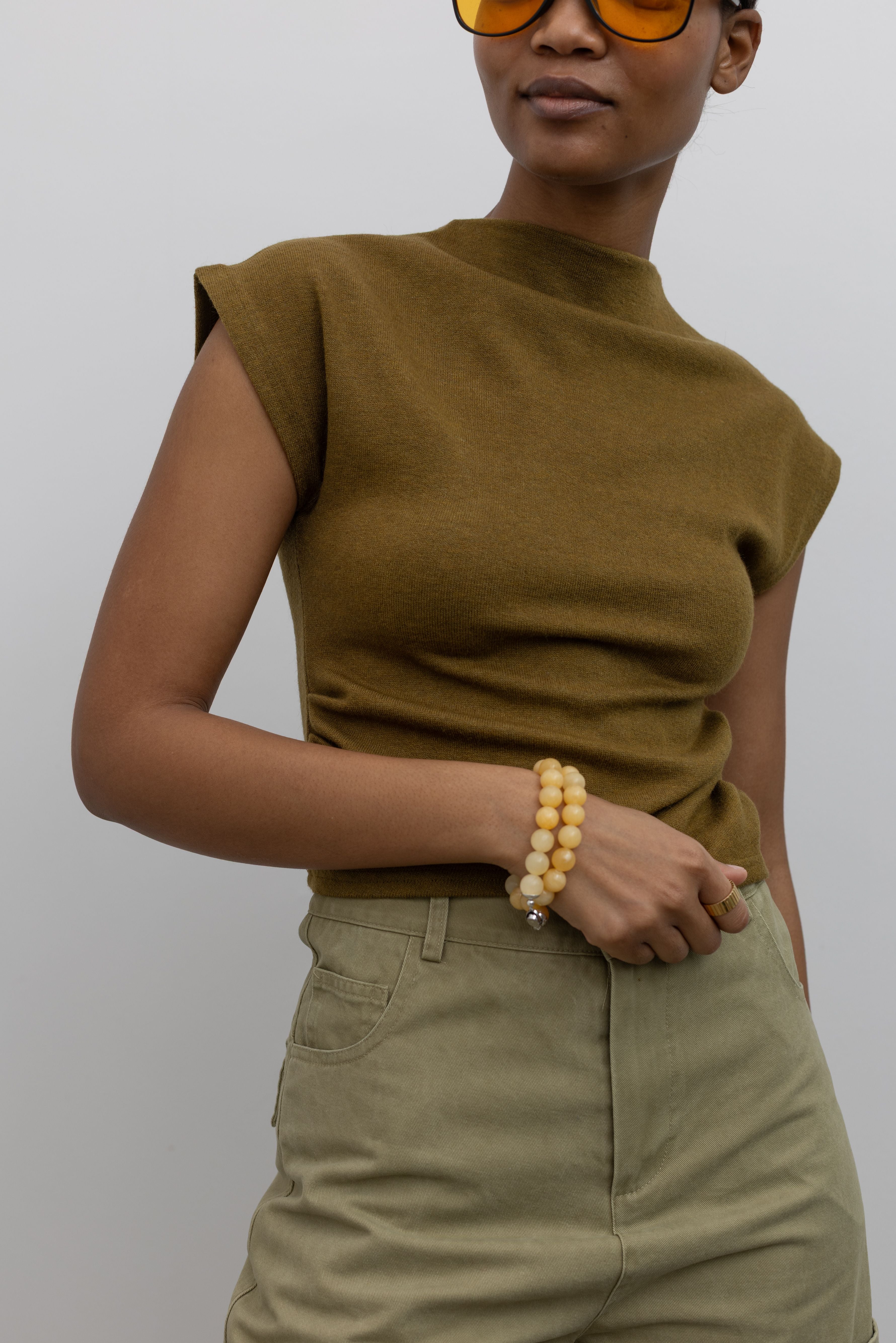 Olive Mock Neck Fitted Knit Top