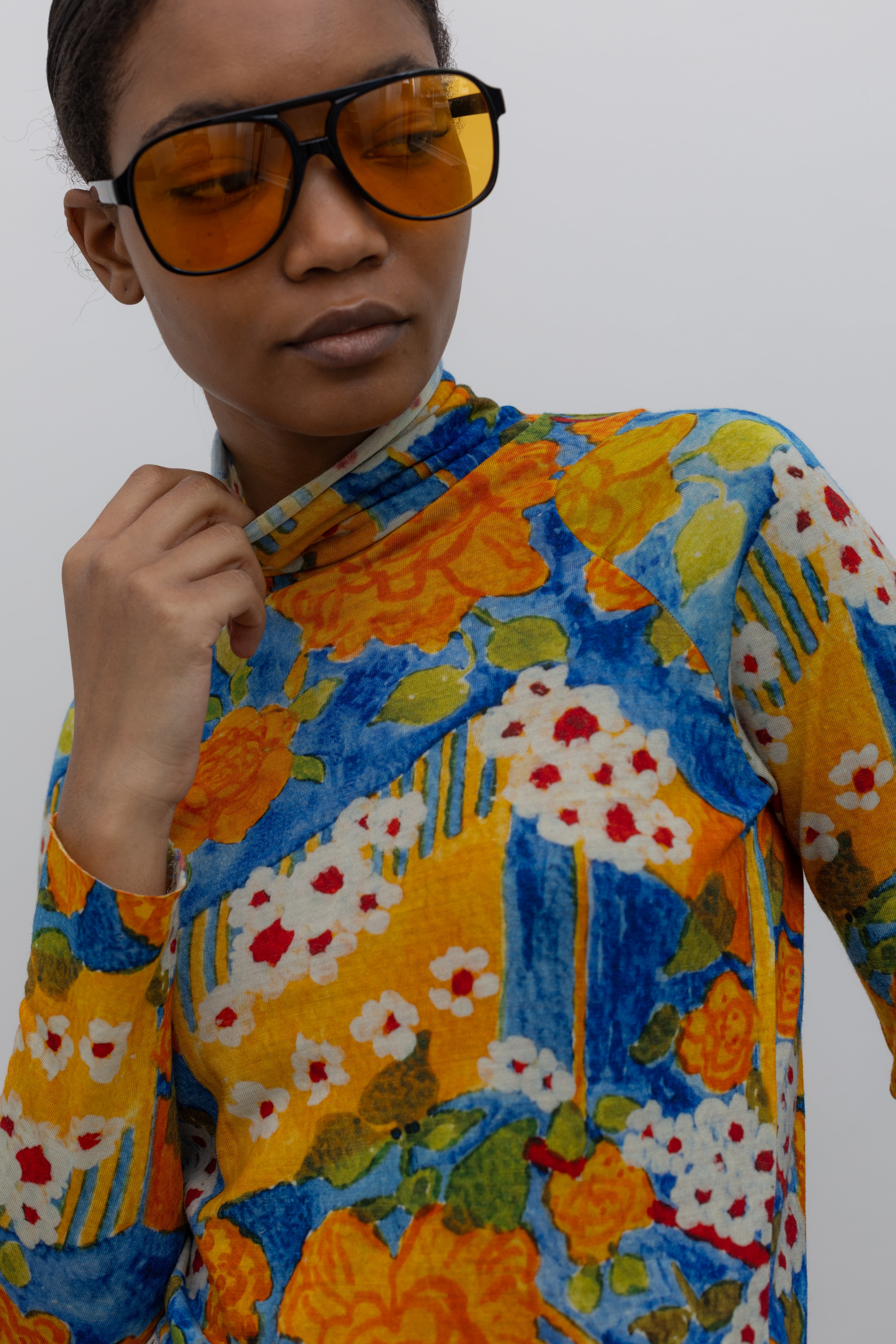 Wool Floral Turtleneck Top