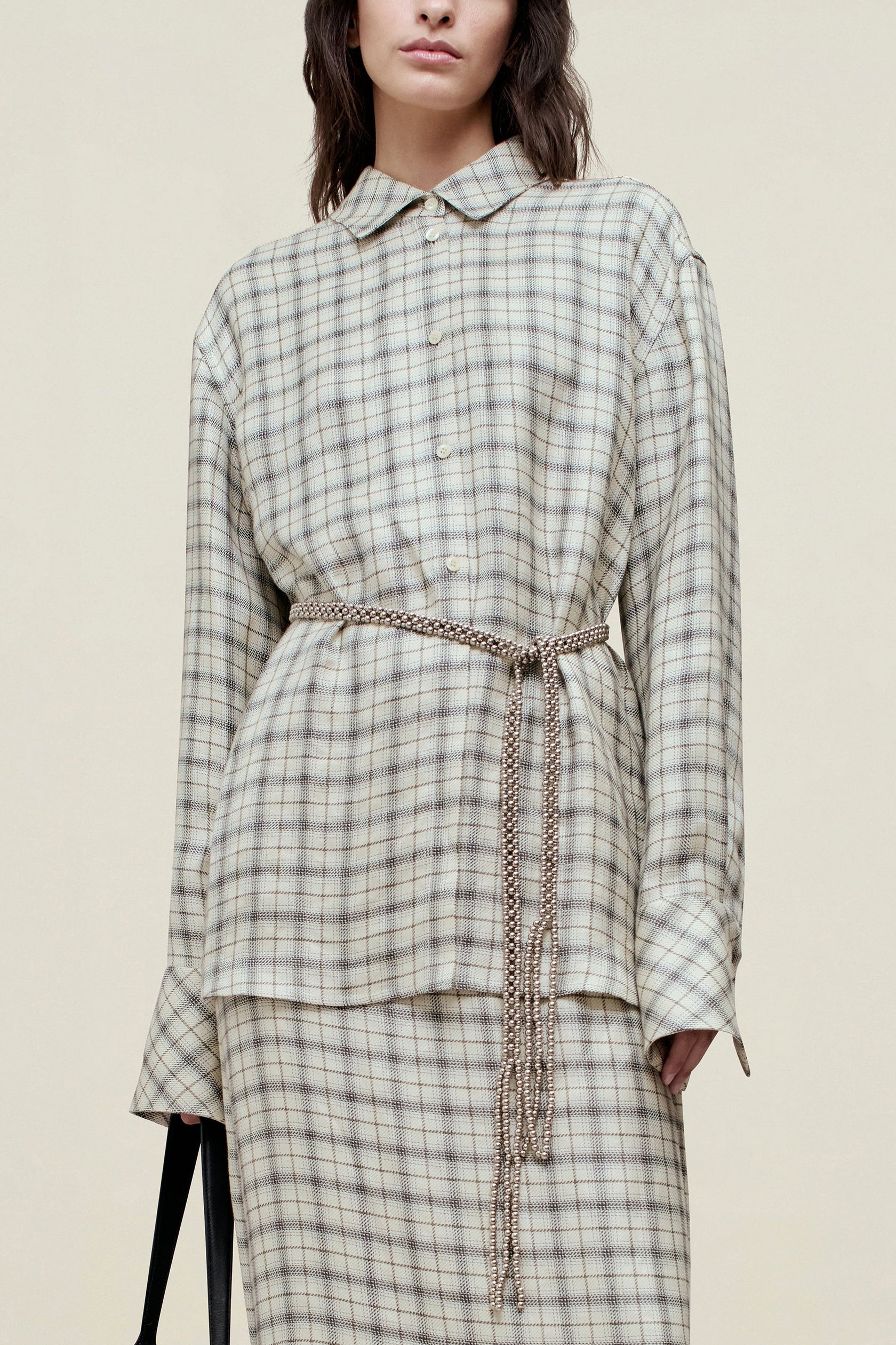 Black Nylon Pleated Midi Skirt